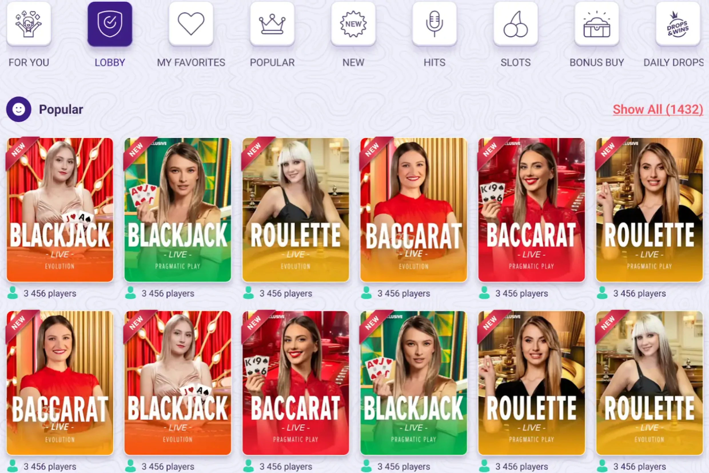 Πέρα από τα κλασικά τραπέζια Blackjack, Μπακαρά και Ρουλέτας, ιδιαίτερο ενδιαφέρον παρουσιάζει η κατηγορία Game Shows, που προσφέρει εμπειρίες τύπου τηλεπαιχνιδιού: